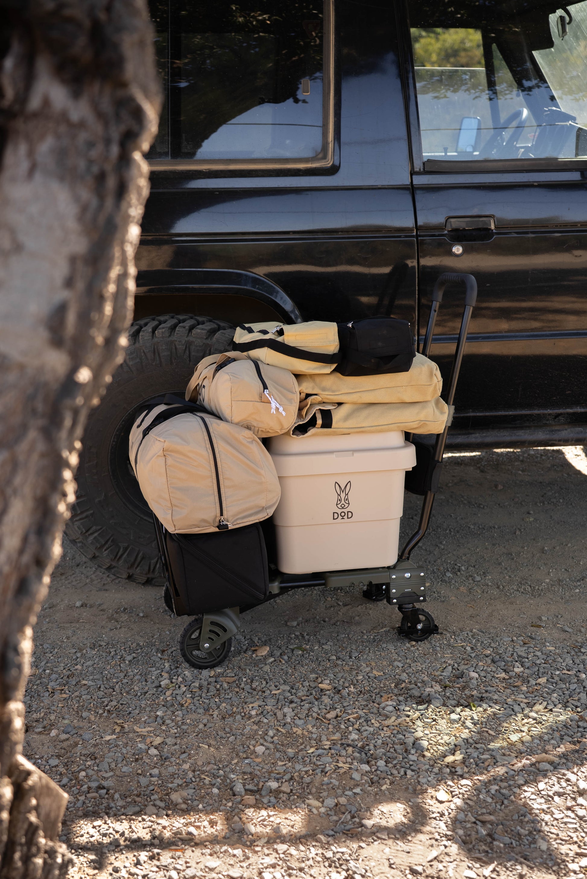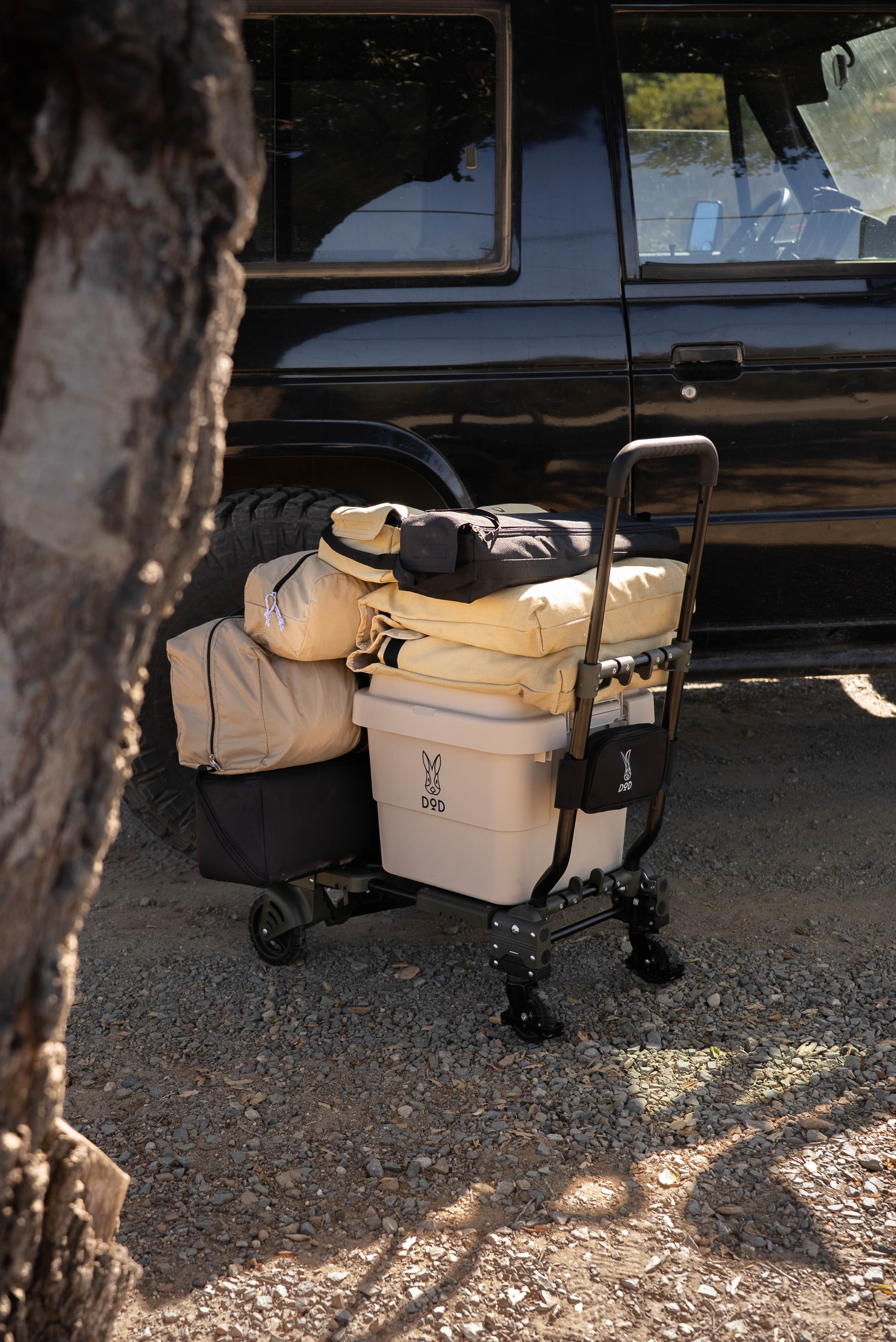 Discover the convenience of our foldable multi-functional carrier, designed to ease the transportation of your gear. This trolley's design ensures that whether you're at a campsite, a parking lot, or navigating tight spaces, you have the ideal mode to carry your items. Its slim folding design ensures easy storage in your car or any compact space. (Available in Olive as Tan has been discontinued)