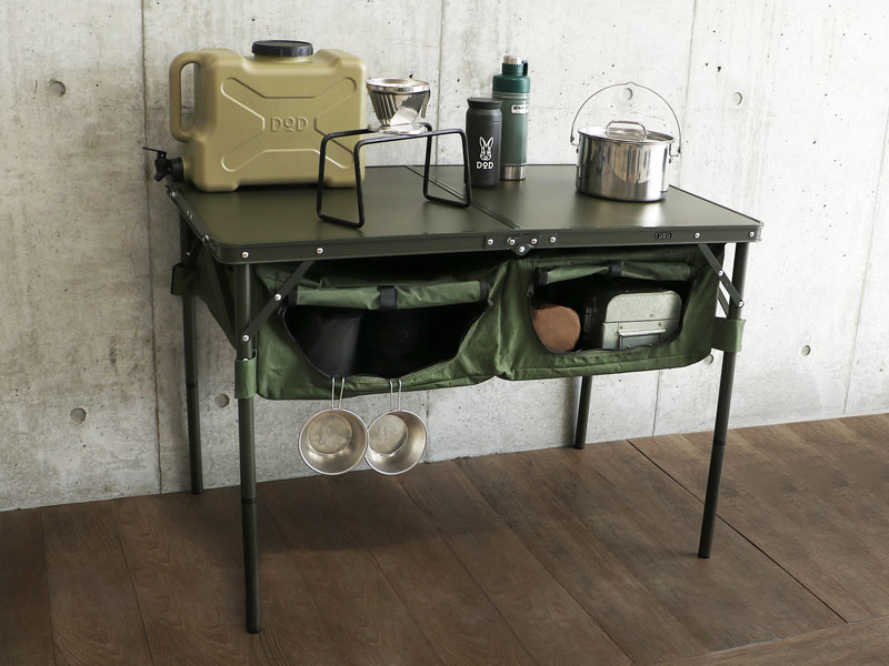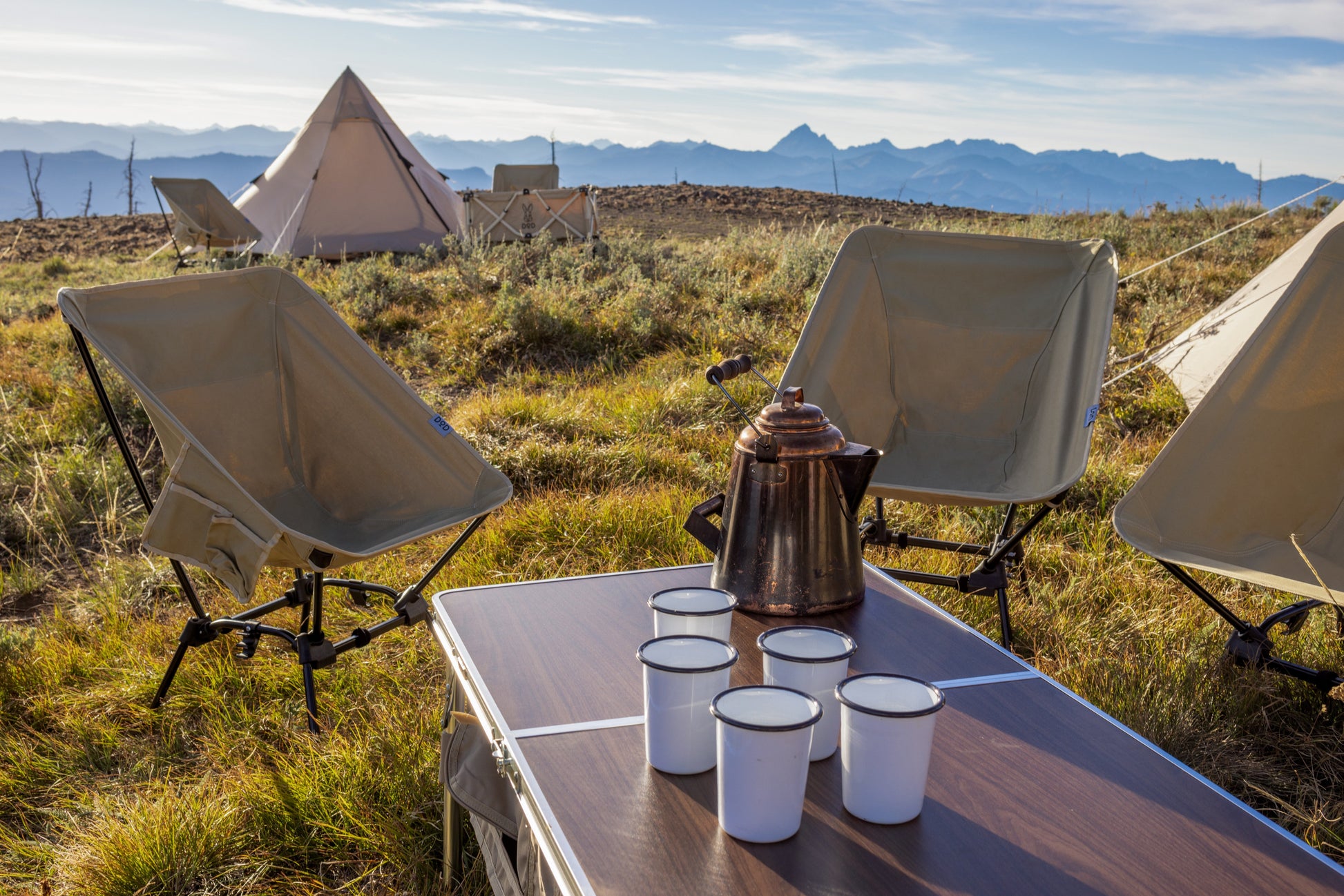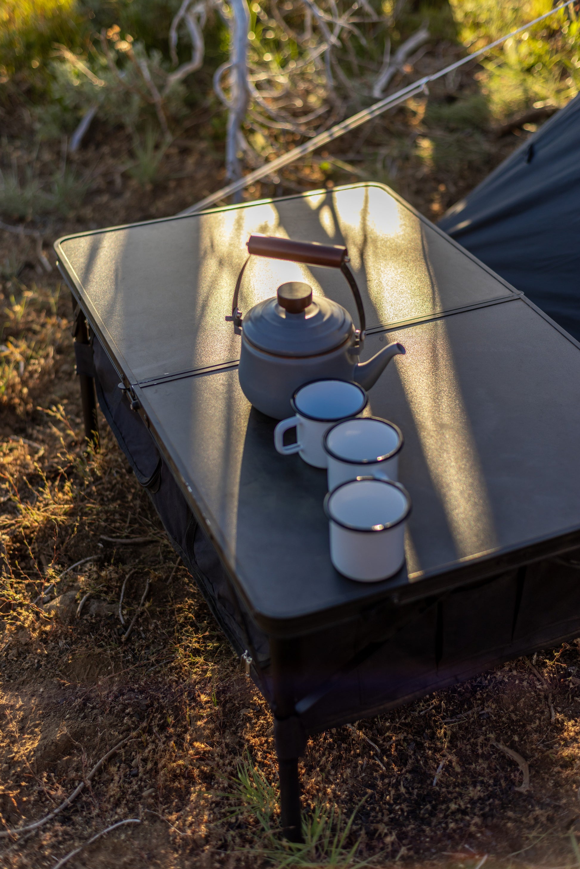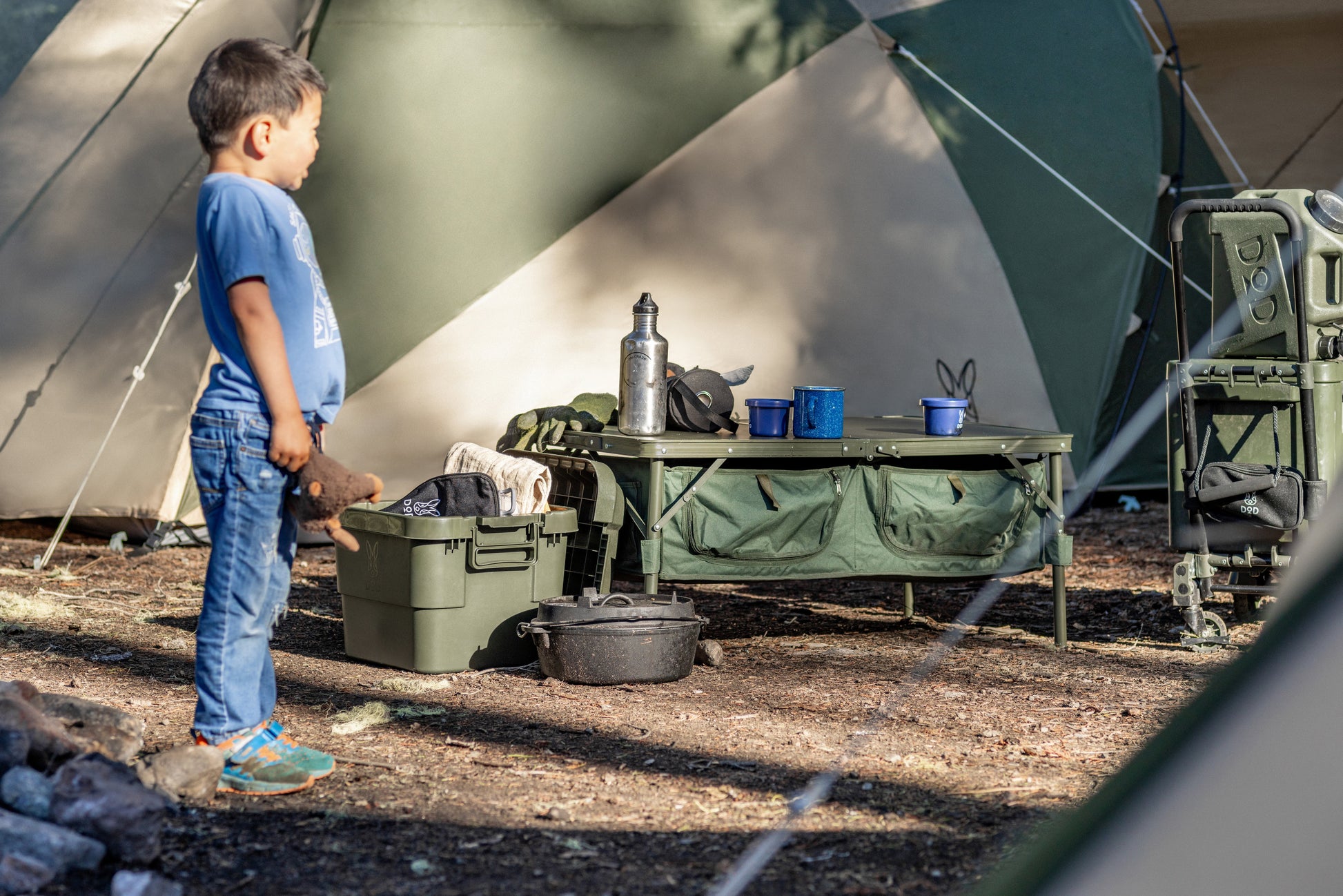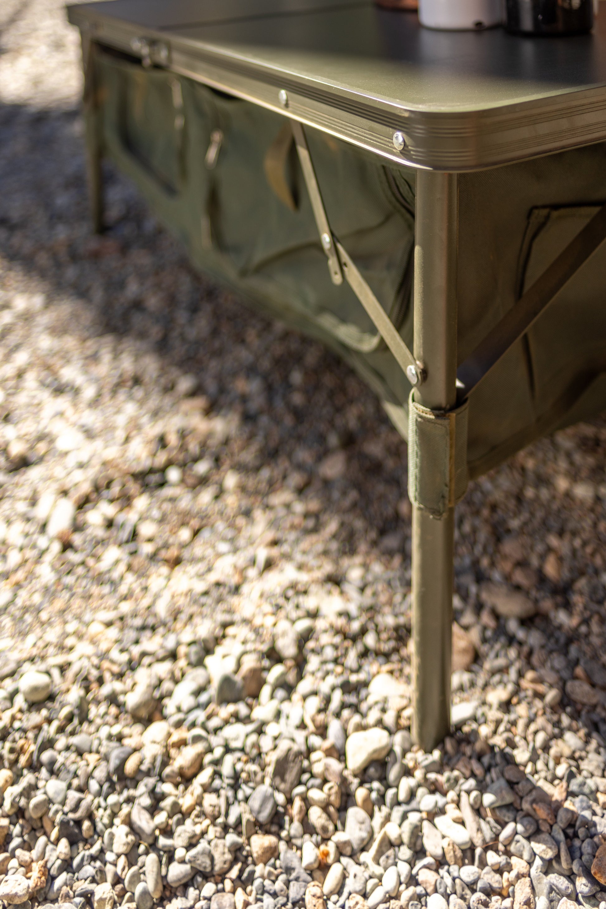 The Good Luck Table is the only camp table you’ll need. It has large storage pockets under the table, and packs down to a thin carrying case. Also, you can use it as a shelf in the back of your SUV to organize your gear. The table features 4 adjustable heights so you can choose whether you want to sit and use it as a coffee table, or raise it up to use as a camp kitchen counter. (Tan available Spring 2026).