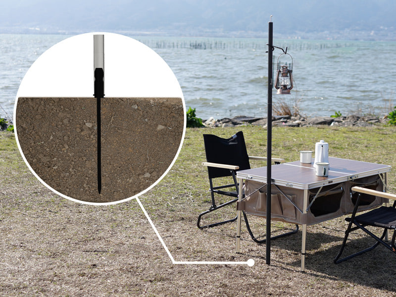 Introducing the ultimate lantern stand spike - a blend of simplicity, durability, and function. Designed for setting up a one-legged lantern stand, simply drive the peg into the ground, insert a separately sold Big Tarp Pole (XP5-507 series), and you've got a stable lantern stand. The single-leg structure minimizes tripping hazards, and its design is tailored to support lanterns up to 4 lbs. This peg not only streamlines your campsite but is also sturdy and versatile, allowing for diverse uses beyond just lantern hanging.