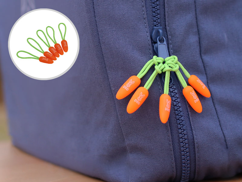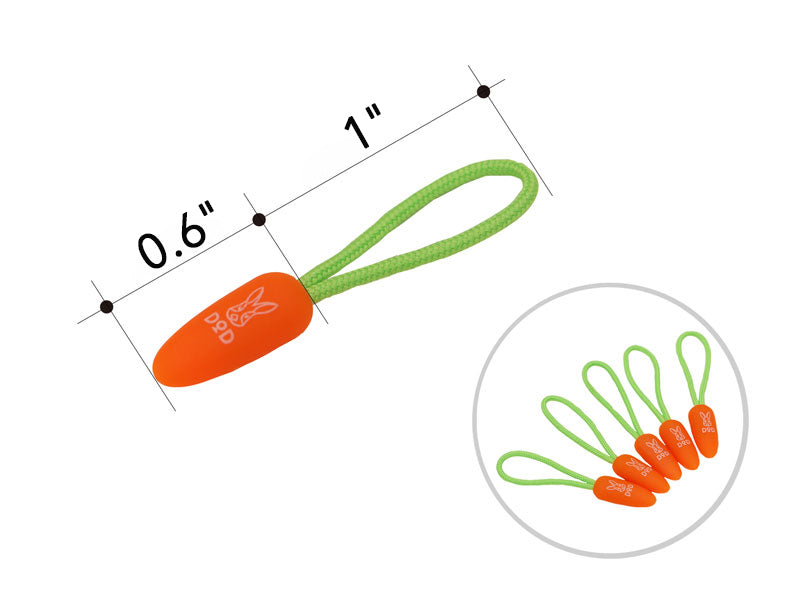 Zip with ease using our whimsical carrot-shaped zipper pull. Designed to make opening and closing zippers more convenient, it's a functional accessory that adds a fun touch to jackets, bags, and any zippered item. Inspired by the DOD rabbit, this pull offers both style and utility. Whether it's a jacket or a bag, if it zips, this pull will likely fit.
