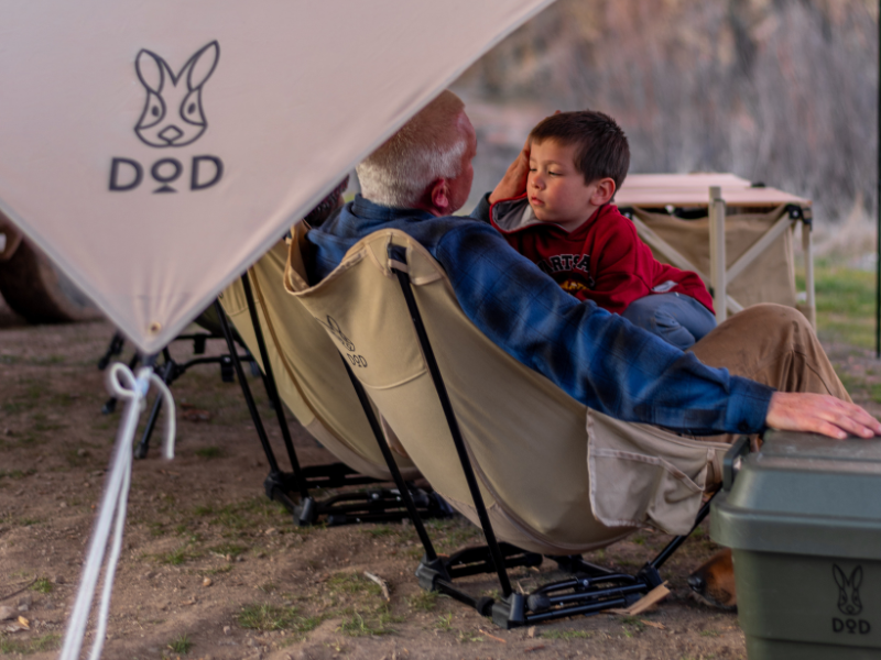DOD Sugoi Chair - A Cotton Canvas Portable Camping and Backpacking Chair Adjustable to the Ideal Height and Seating Angle for Any Outdoor Activity.Other camping chairs have one seating position: low or high, reclined or straight up. And whichever chair you bring along on your trip, that’s how you’ll sit for the whole trip. The Sugoi Chair solves that problem by adjusting to all seating positions.Whether enjoying a meal with your family around the table or roasting marshmallows around the campfire, the height and angle of our Sugoi Chair adjusts to suit the occasion.