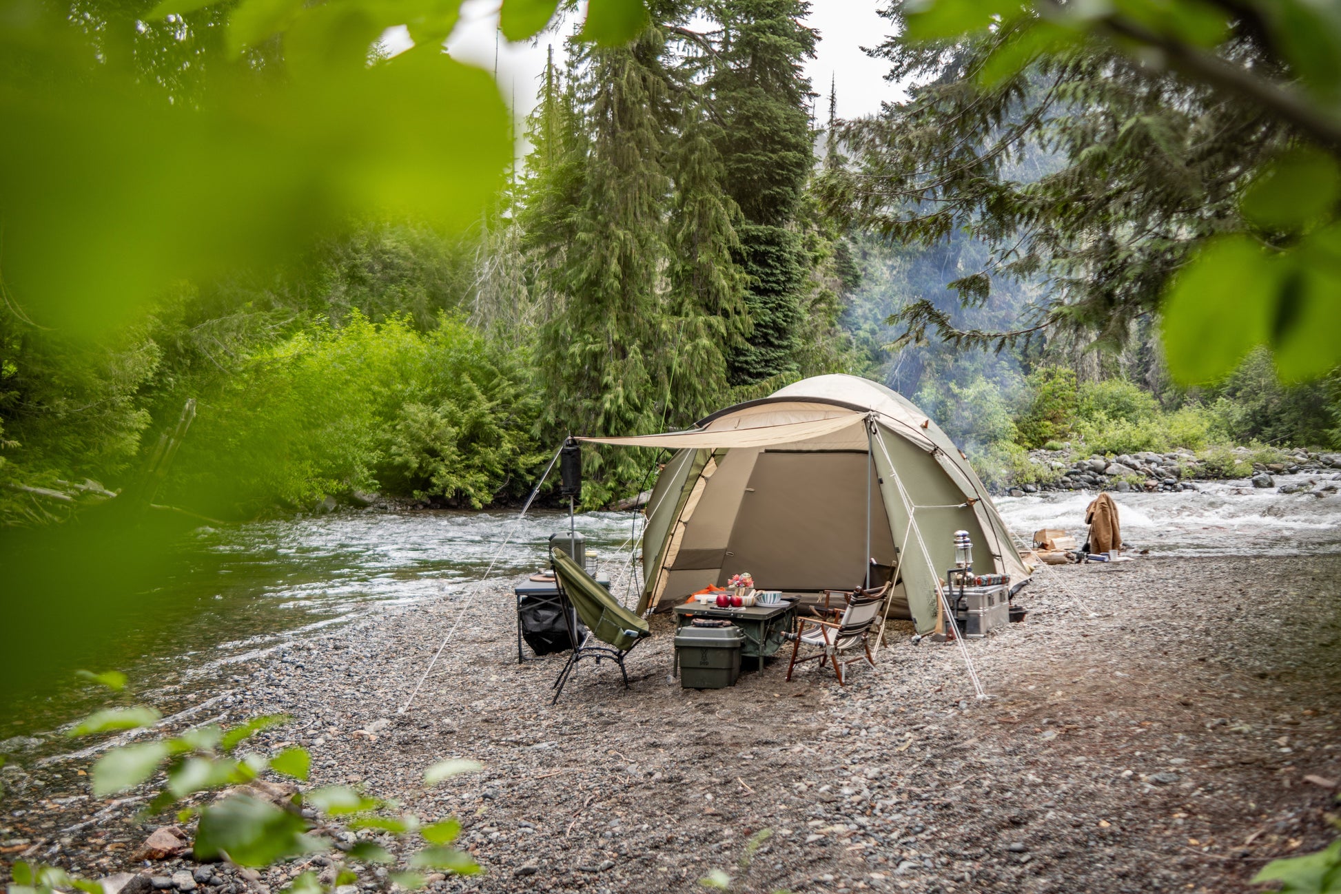 THE Dome Tent epitomizes classic tent design with its orthodox dome shape and crossed poles. Its simplicity makes for easy setup, and the added front room offers a relaxing space. This tent comes with a ground sheet to protect it and is made with durable 150D fabric. It features ample space, with a high ceiling in the inner tent and a large front room that can be extended into a canopy area for additional living space. (For a limited time, comes with Kiso Tarp Poles for awning). (Large has been discontinued).