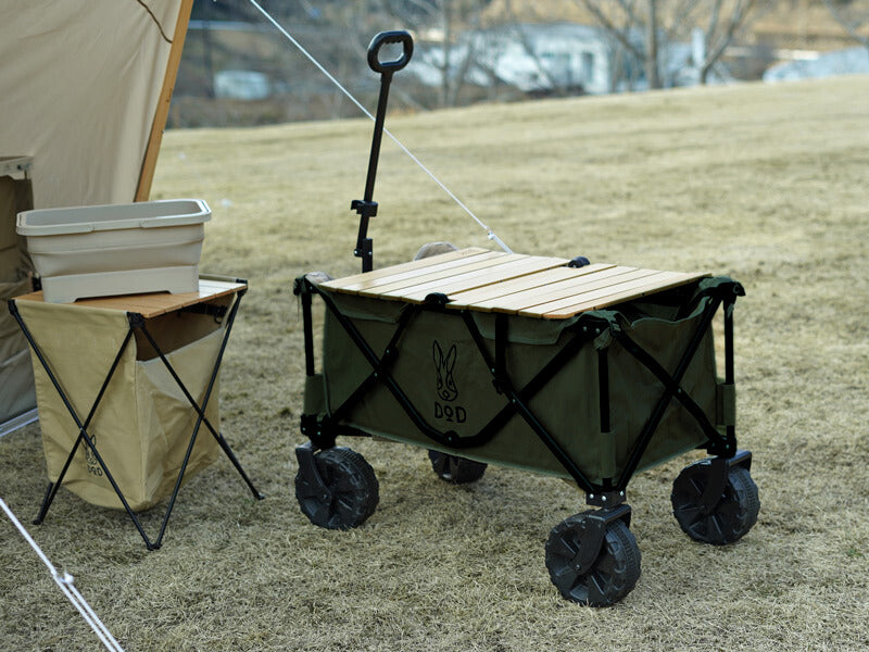 Get your gear from car to camp with this rugged folding wagon, built with high gauge steel, powder coated for durability, and equipped with extra large wheels to handle rough terrain. Now bundled with the Uma Folding Table Top for added functionality at camp, perfect for quick setups, cooking, or gear organization.